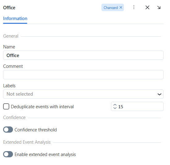 Use deduplication with extreme caution. If cameras within a group observe different scenes, some objects may be skipped. See Deduplicate Events for details.