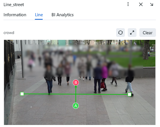 In addition, the line crossing functionality allows you to collect data for further analysis of the flow of visitors in the Analytical BI service and solve the following tasks: