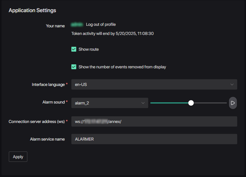 Alarm Monitor does not display any information by default. When receiving the alert, the application displays information about the event together with an audio signal. The application will alternately display events until each of them is confirmed.
