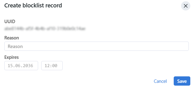 Specify the reason for the device to be blocked (mandatory) and the block expiry date (optional). If no date is specified, the block will be permanent.
