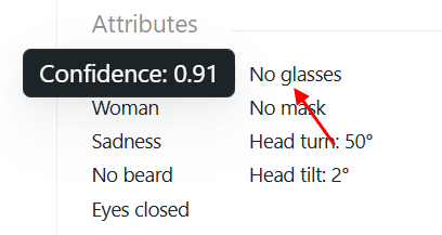 The confidence value of the recognized attribute depends on the neural network models used. If you have difficulty interpreting these values, please contact our technical experts at support@ntechlab.com.