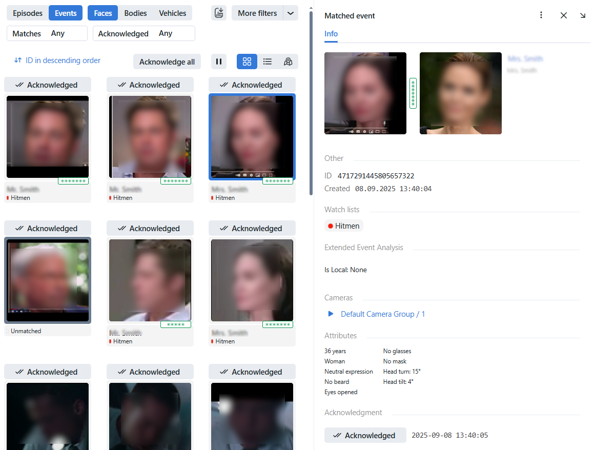 Once an object is detected, you will see a notification on one of the event lists: Faces, Bodies, or Vehicles, subject to the object type.