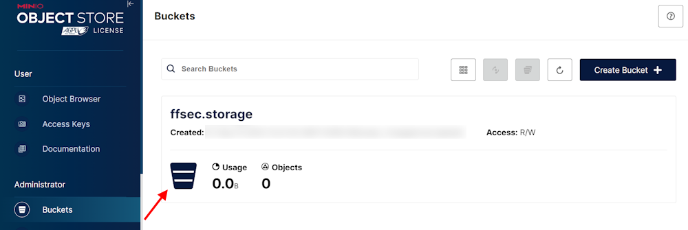 . Войдите в веб-интерфейс MinIO с учетными даннымиMINIO_ROOT_USER