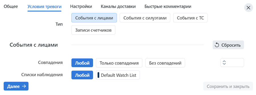 Настройка пользовательских тревог может быть сложной и требует определенного опыта. Для настройки пользовательских тревог в FindFace Multi свяжитесь с нашими техническими специалистами (support@ntechlab.com).