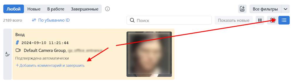 (например, когда тревога ложная). Если никаких действий оператором не производилось, по истечении указанного интервала автопринятия тревога подтверждается автоматически. Тревога считается обработанной и завершенной только когда к ней оставлен комментарий. Чтобы оставить комментарий, перейдите Добавить комментарий и завершить (при раскладке страницы в виде списка):