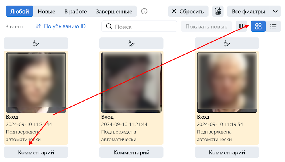 Каждый статус тревоги соответствует заданным условиям. Например, Новые тревоги – это тревоги без реакции и комментариев. Тревоги со статусом В работе имеют набор фильтров Подтверждённые, Отклонённые, Без комментариев. Завершенные тревоги имеют набор фильтров Подтверждённые, Отклонённые, С комментариями.