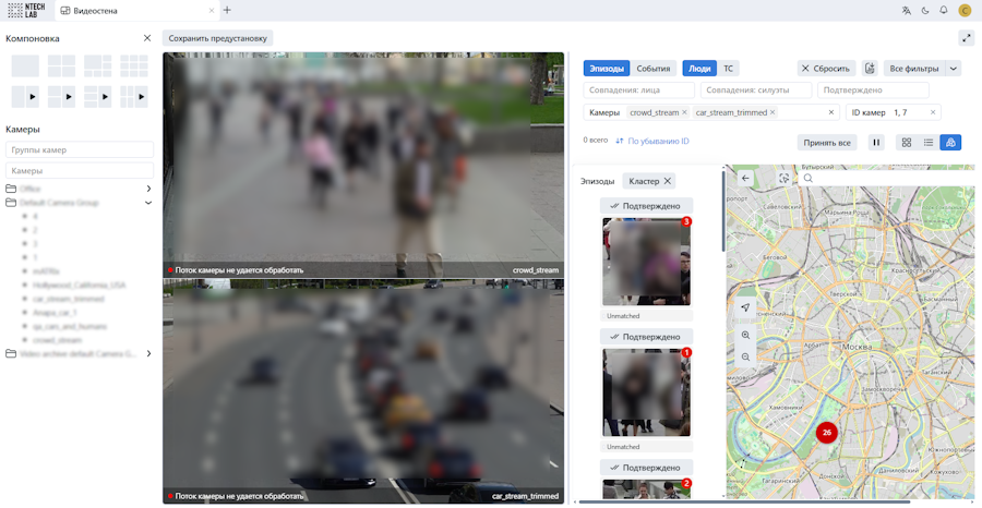 видеотрансляция с детектированием объектов и лентой эпизодов/событий