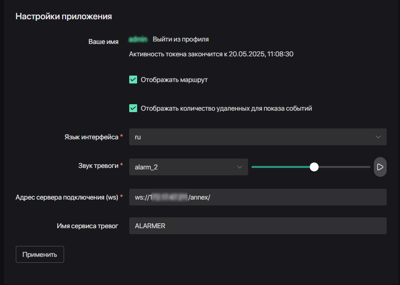 ALARMERдля имени сервиса тревог. Это конечная точка сервиса, может использоваться для получения сообщений от нескольких серверов.Нажмите Применить.