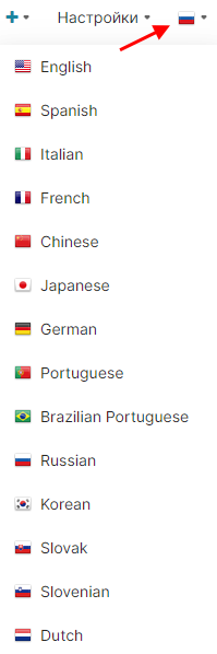 sudo vi /opt/findface-multi/configs/superset/superset_config.py LANGUAGES = { "en": {"flag": "us", "name": "English"}, # "es": {"flag": "es", "name": "Spanish"}, # "it": {"flag": "it", "name": "Italian"}, # "fr": {"flag": "fr", "name": "French"}, # "zh": {"flag": "cn", "name": "Chinese"}, # "ja": {"flag": "jp", "name": "Japanese"}, # "de": {"flag": "de", "name": "German"}, # "pt": {"flag": "pt", "name": "Portuguese"}, # "pt_BR": {"flag": "br", "name": "Brazilian Portuguese"}, "ru": {"flag": "ru", "name": "Russian"}, # "ko": {"flag": "kr", "name": "Korean"}, # "sk": {"flag": "sk", "name": "Slovak"}, # "sl": {"flag": "si", "name": "Slovenian"}, # "nl": {"flag": "nl", "name": "Dutch"}, }