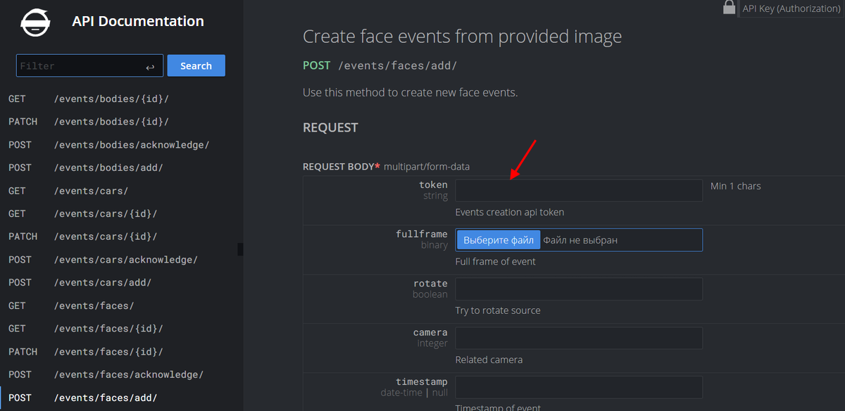 Указывайте данный токен в каждом API-запросе, отправляемом внешним детектором в FindFace Multi для создания события. В результате кадры, переданные в запросах, будут связаны с камерой, соответствующей внешнему детектору, и обработаны по аналогии с кадрами с камер видеонаблюдения.