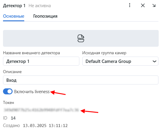 liveness, если требуется. Если вы включилиlivenessна внешних детекторах, рекомендуется заменить модель нейронной сети, используемую для распознавания витальности. Поскольку кадры от внешних детекторов обрабатываются сервисомfindface-extraction-api, выполните настройку в файле конфигурацииfindface-extraction-api.yaml.На этой же вкладке вы увидите токен.