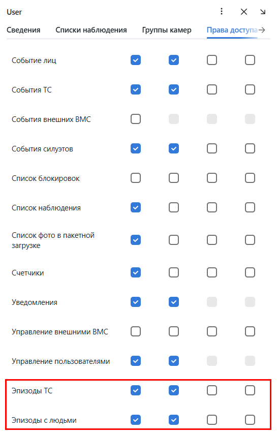 Фильтры эпизодов для людей и ТС