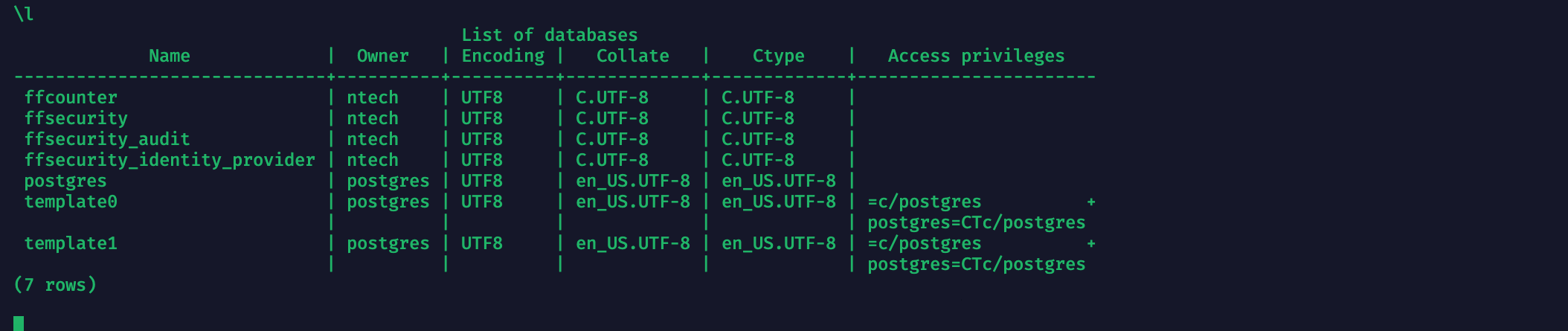CREATE DATABASE ffsintegration WITH OWNER ntech ;