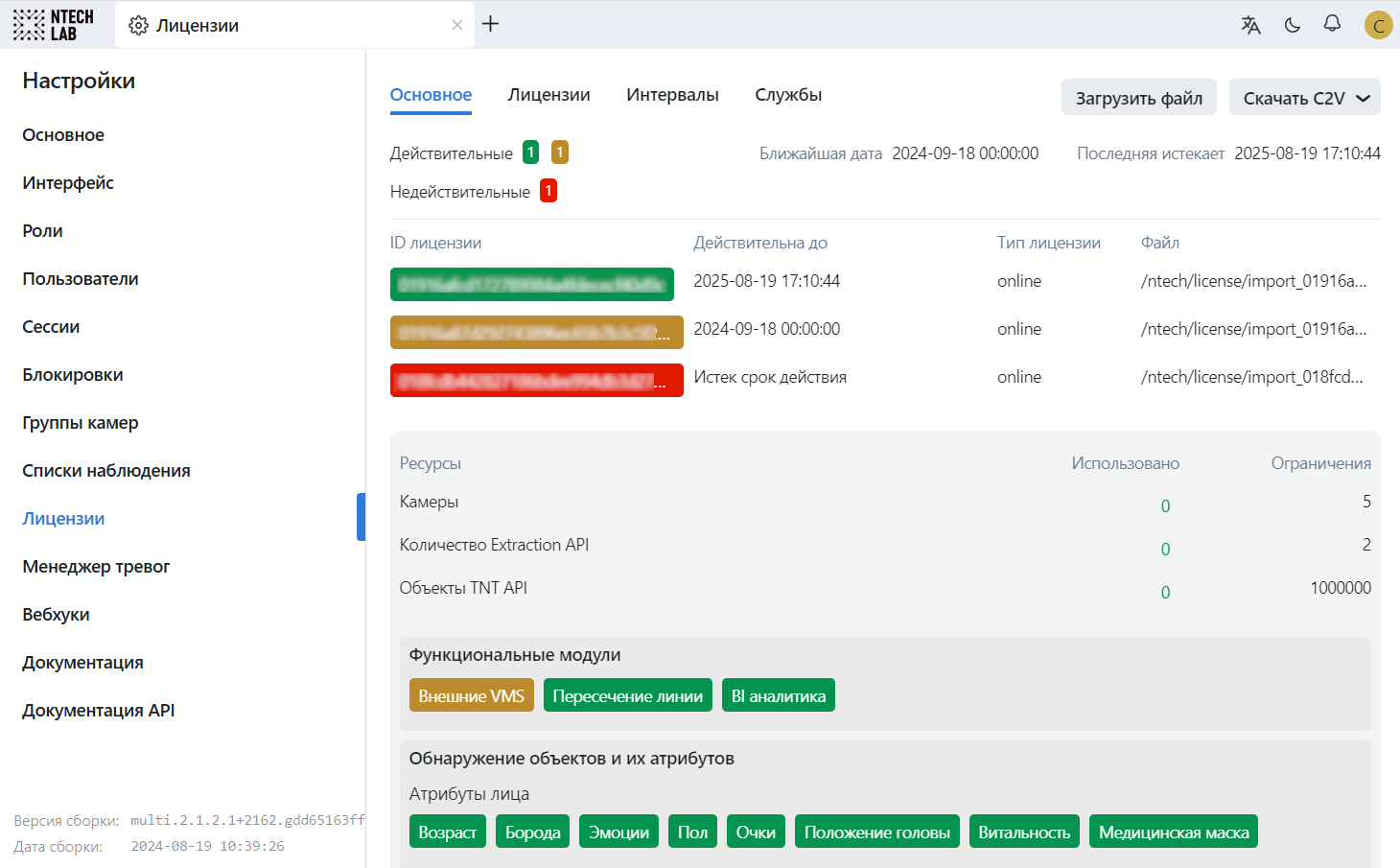 В FindFace Multi на вкладке Настройки → Лицензии загрузите файл лицензии, полученный от менеджера.