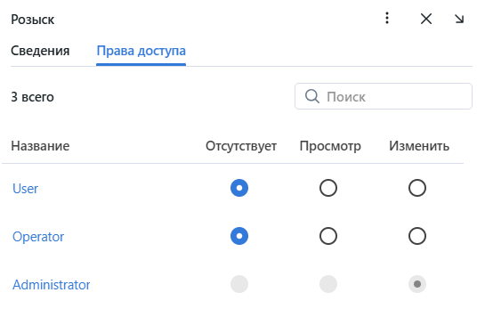 На вкладке Права доступа назначьте права на список наблюдения, указав роли пользователей, которые смогут изменять/просматривать его настройки.