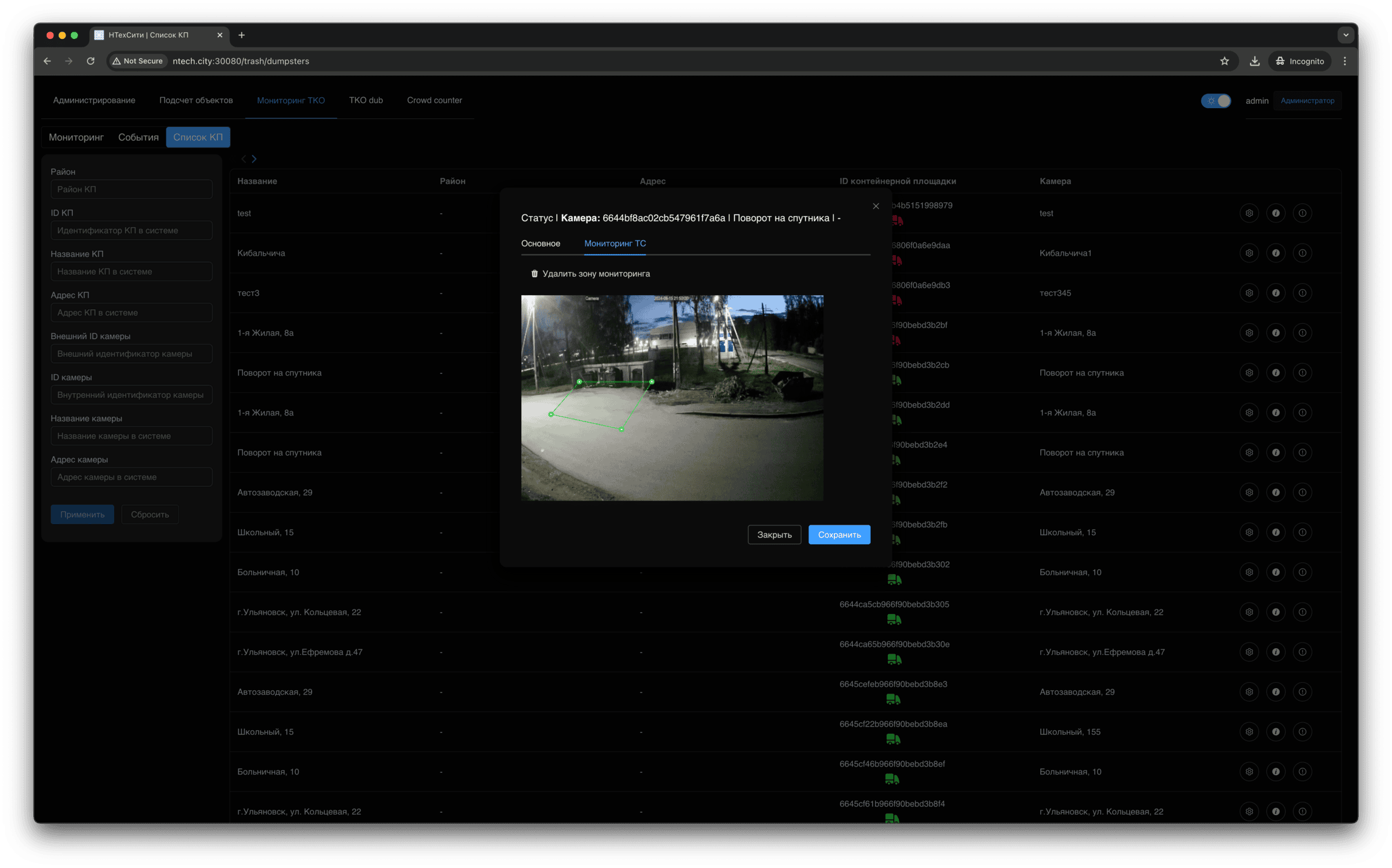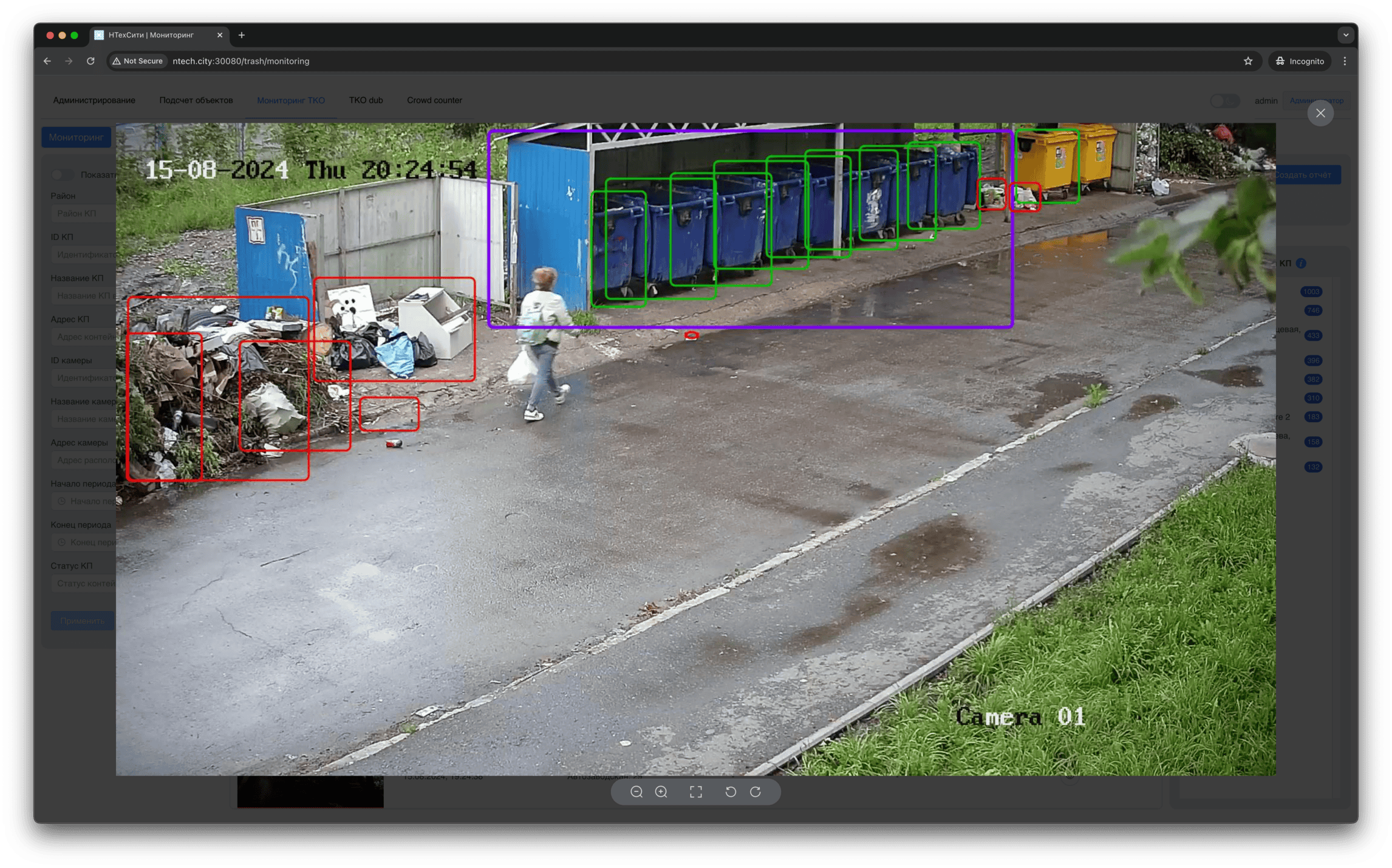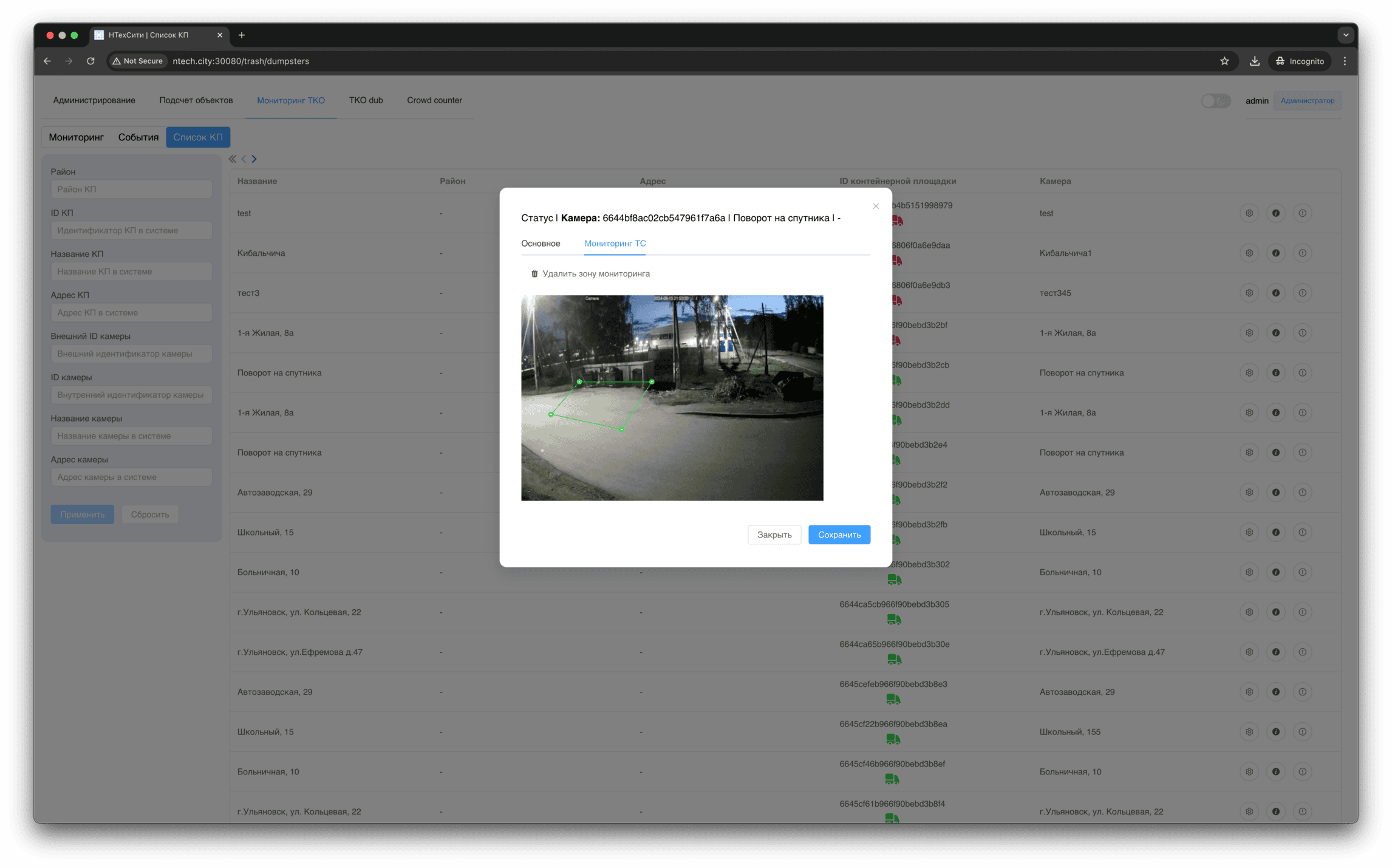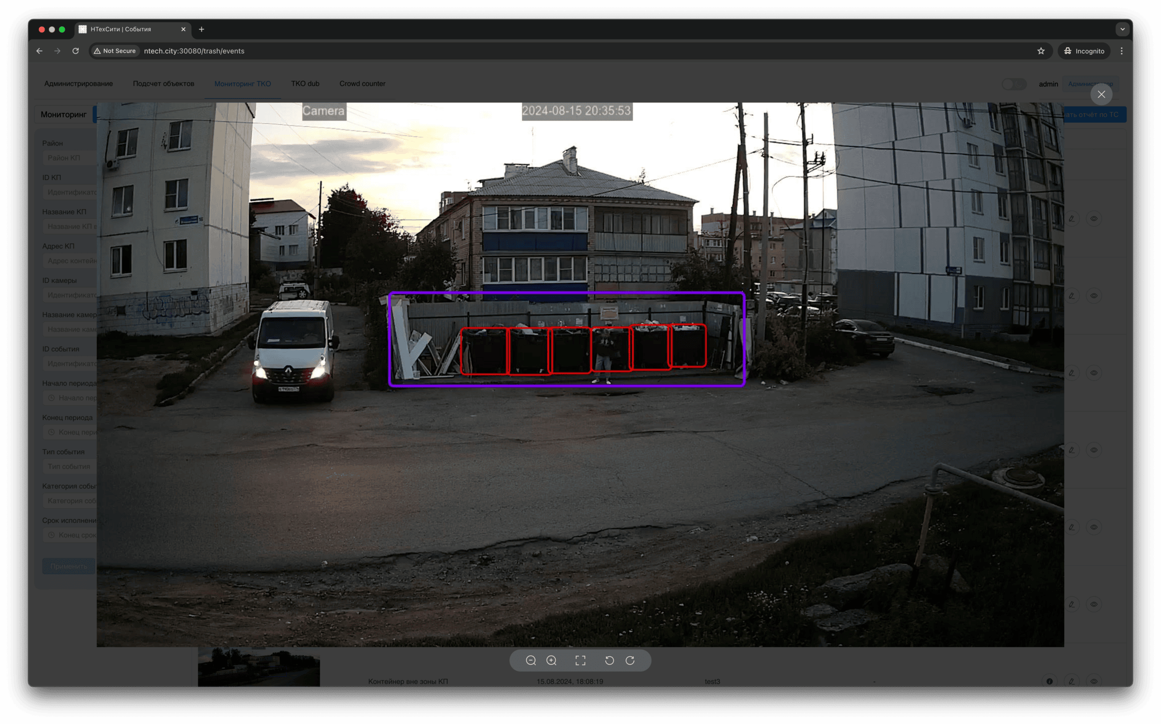 Изображение контейнерной площадки, связанное с событием мониторинга, доступно для просмотра в полноэкранном режиме.