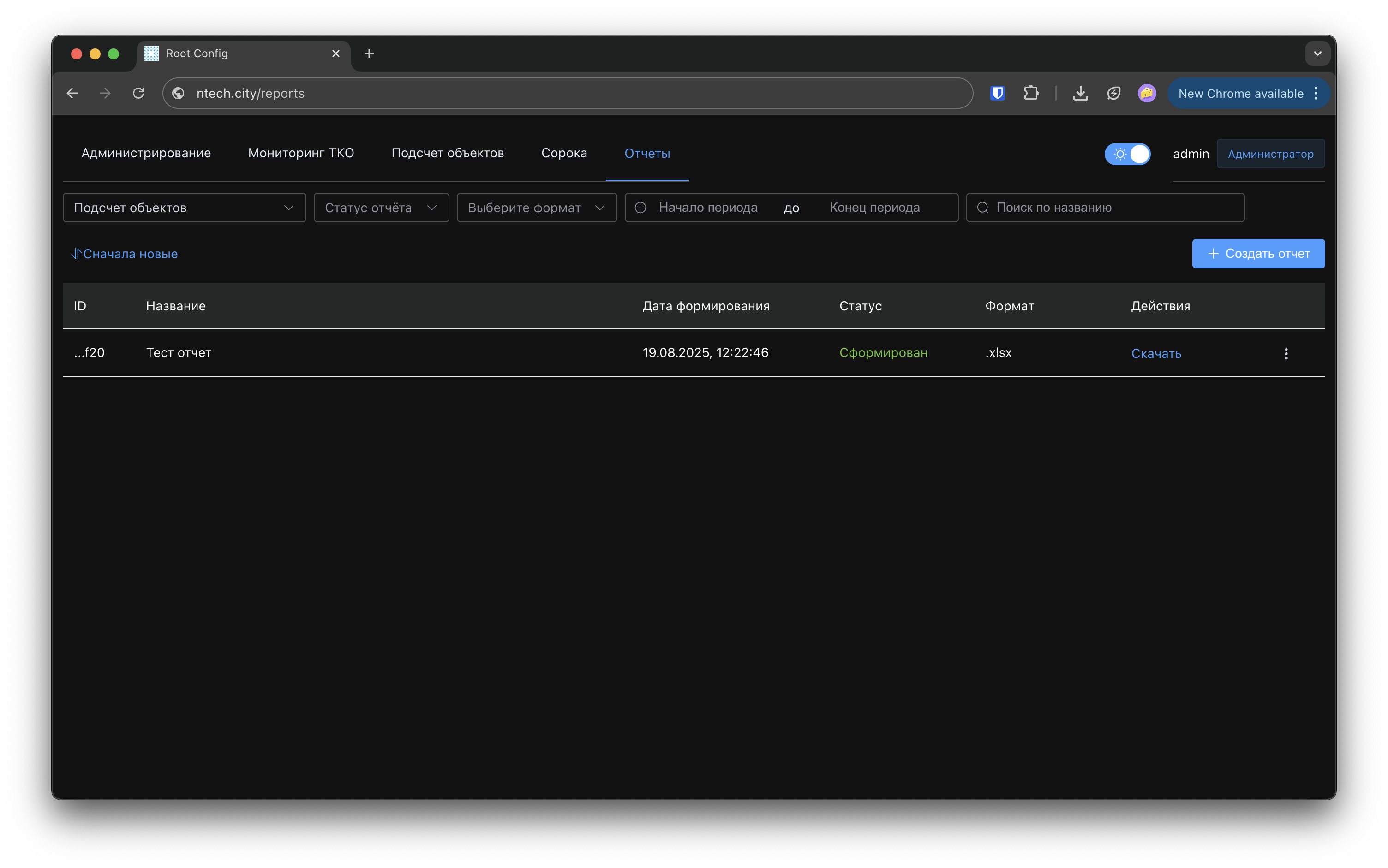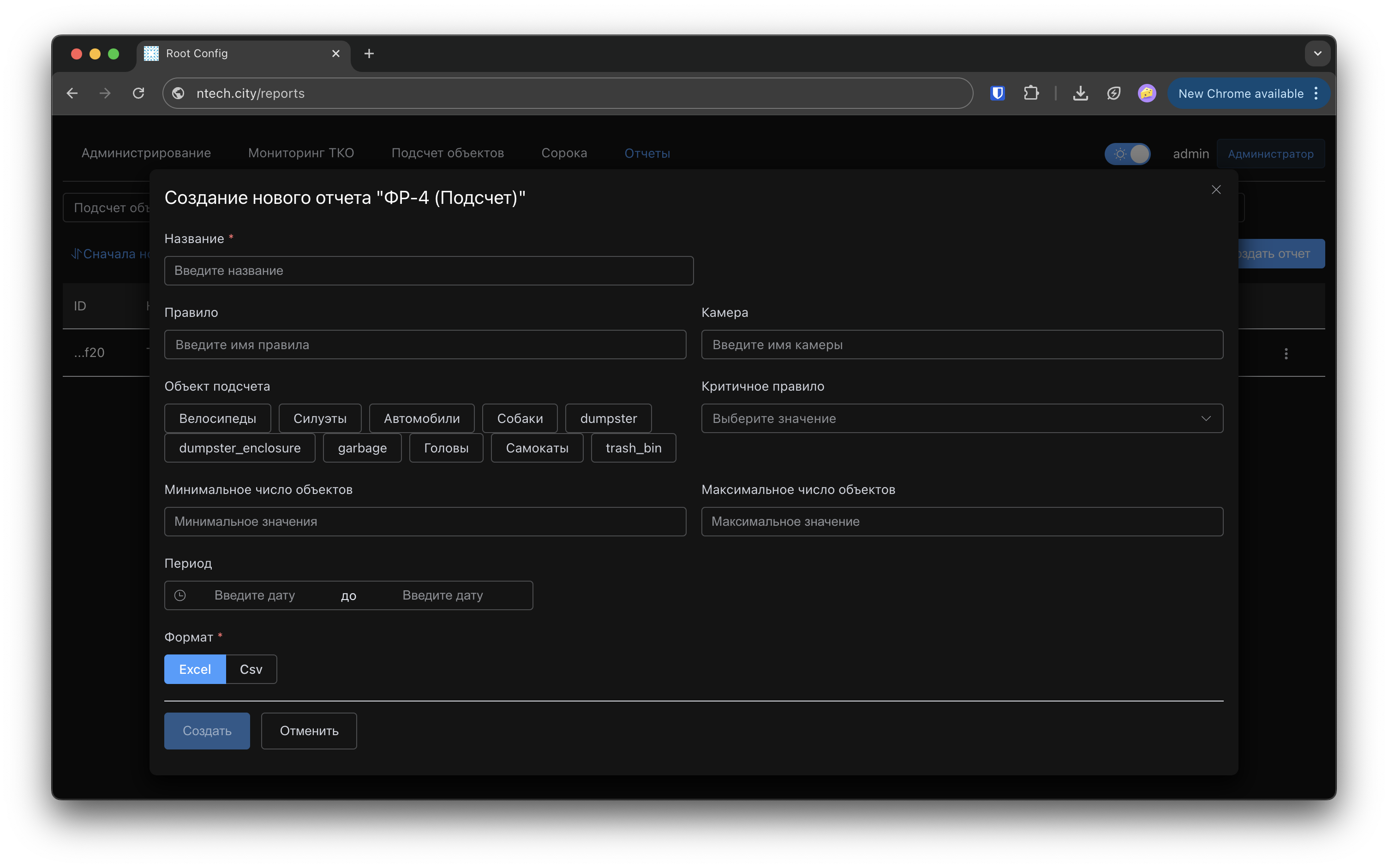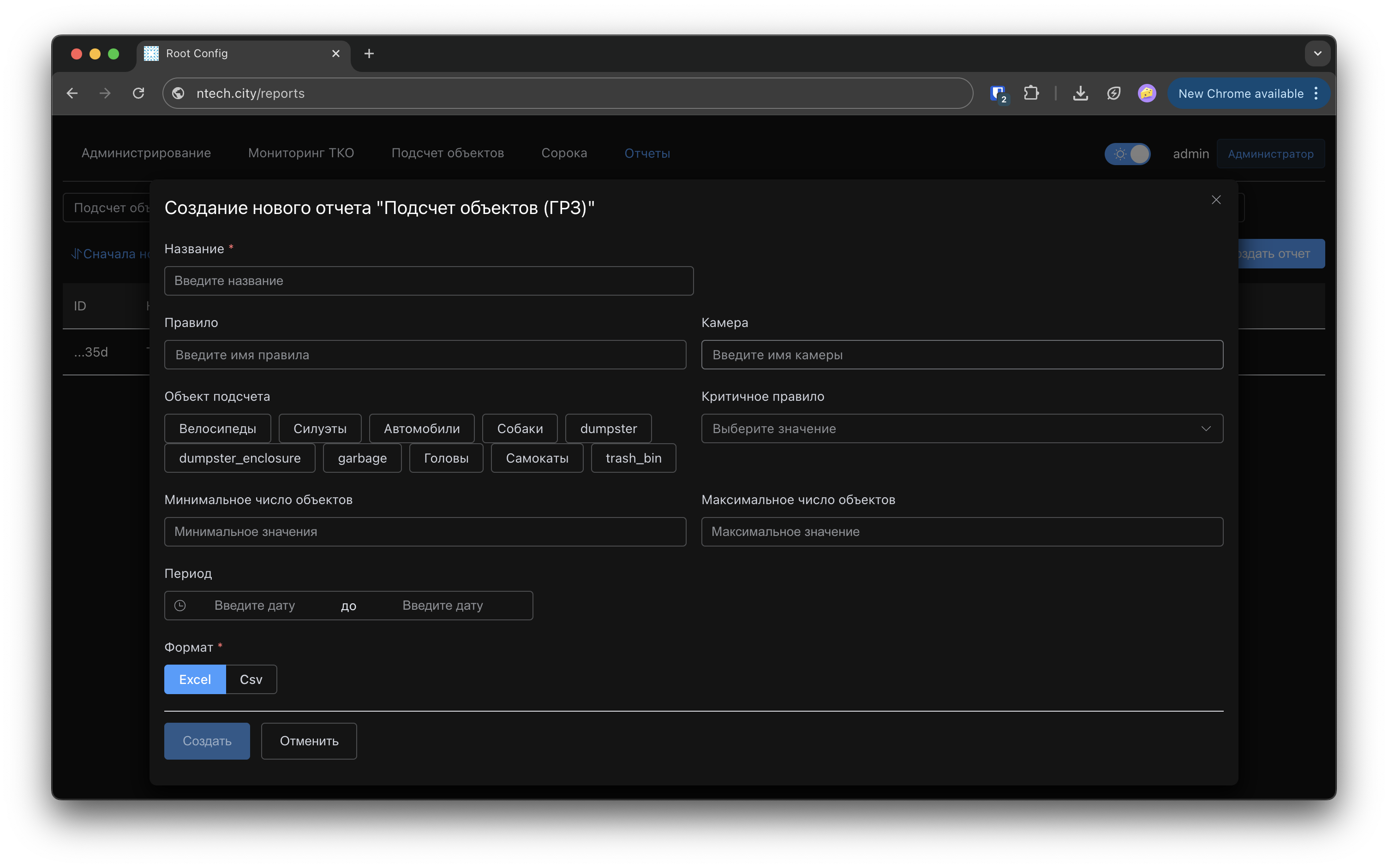 Решение по подсчету объектов поддерживает формирование и выгрузку отчетов. Доступно несколько типов отчетов.